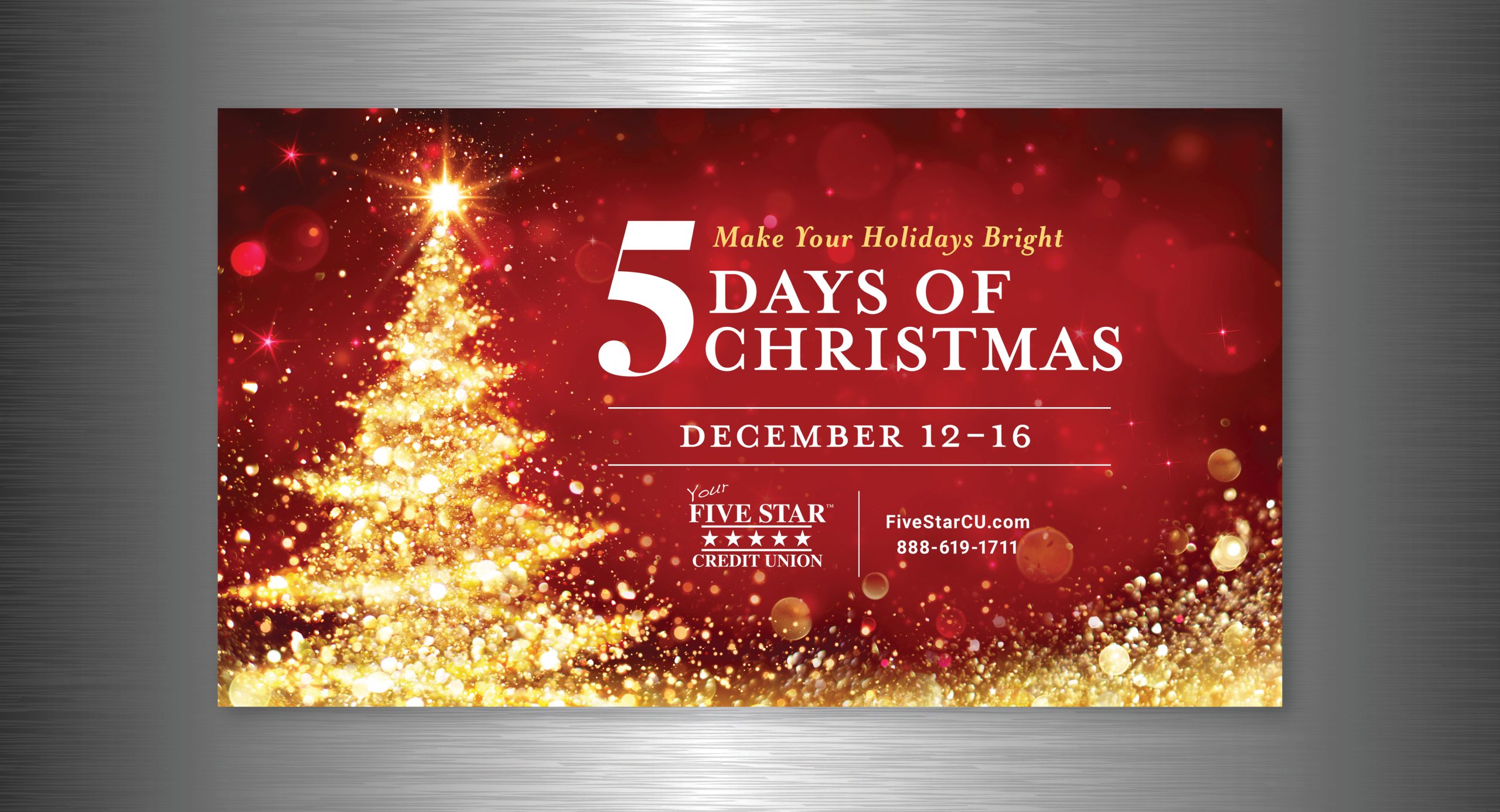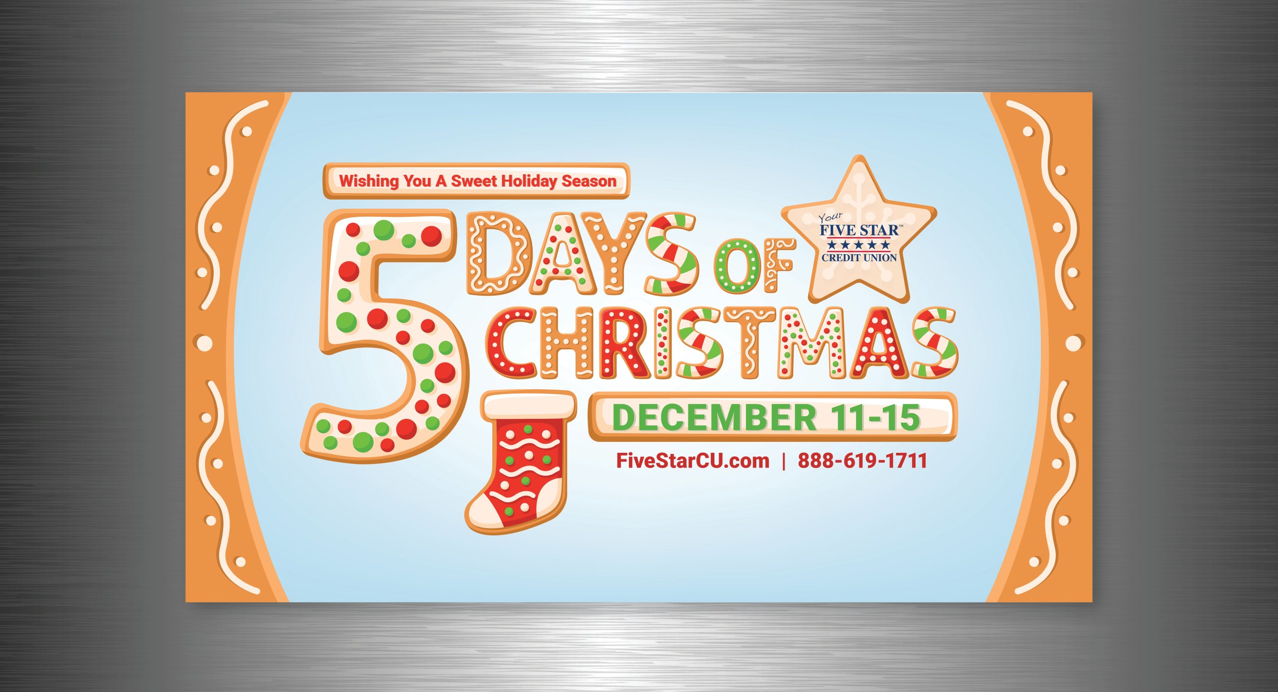 “Five Days of Christmas” was a festive social media campaign designed to drive engagement and boost online interaction during the holiday season. This cheerful initiative spread holiday cheer by offering daily trivia questions related to Christmas, with prizes for correct answers. Each day, participants had the chance to win, culminating in a special giveaway on the final day. Our team created vibrant graphics to enhance each post, encouraging community participation and increasing the credit union’s online presence. The campaign successfully created a sense of excitement, making the holiday season even more memorable for all.