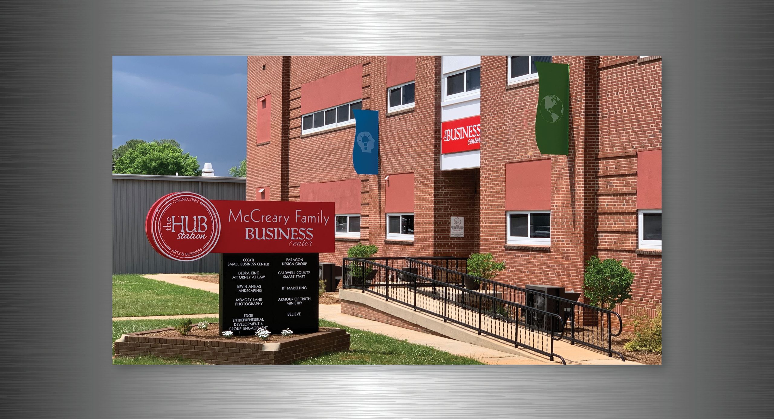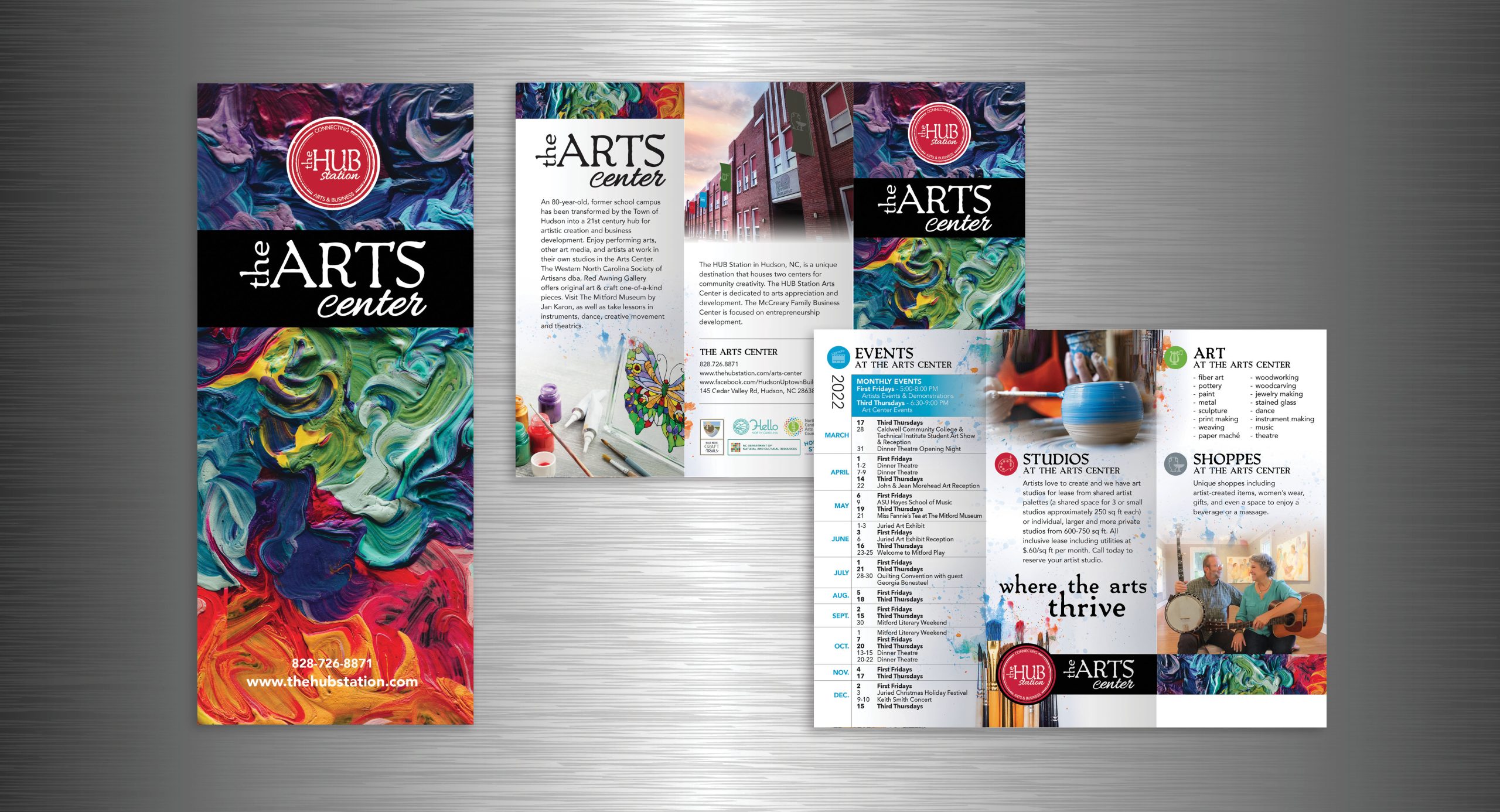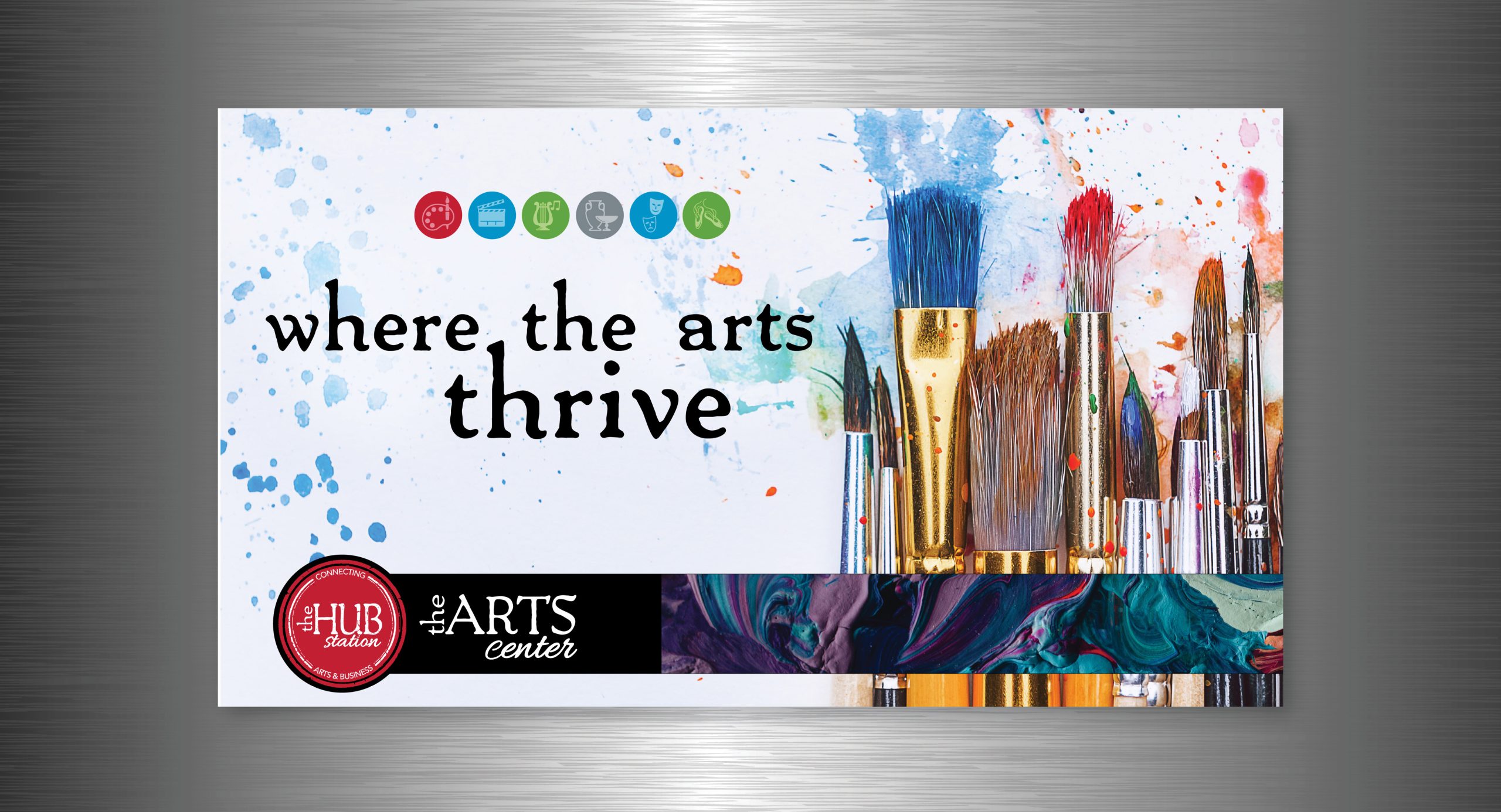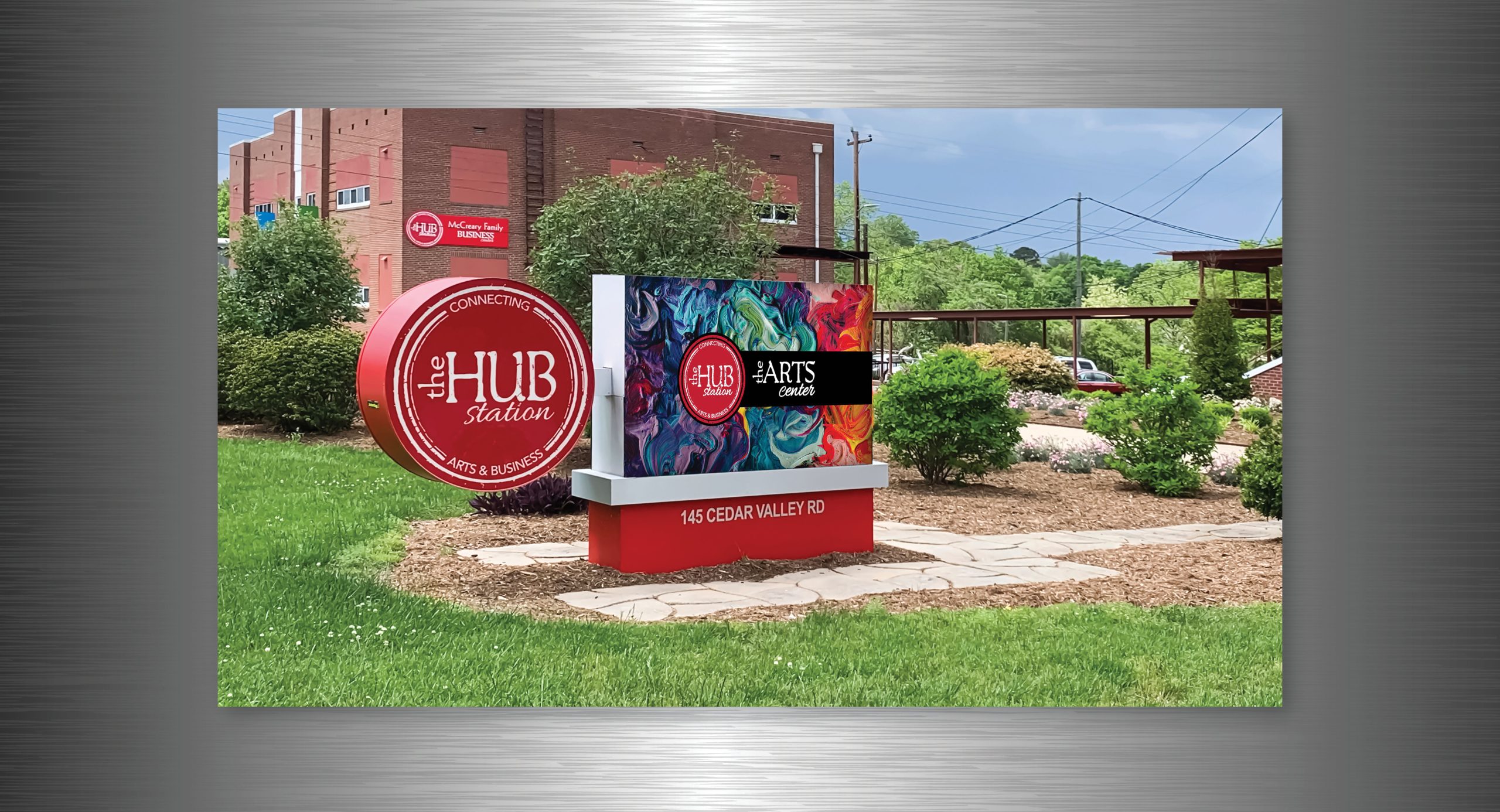The HUB Station is connecting arts and businesses working creatively together to inspire and collaborate. A co-working community for artists, small businesses, start-ups, and entrepreneurs. The logo pays homage to the site’s historical significance while adding a modern appeal that reinforces the tagline, Connecting Arts & Business. The modern exterior signage identifies the Art Center and Business Center with colorful icons that relate to each. The digital signage was designed to unify the two centers while promoting events and activities within The HUB Station. Additionally, a brochure and digital marketing materials extend The HUB Station’s reach, capturing the vibrant community through visual storytelling and showcasing key amenities and opportunities.
